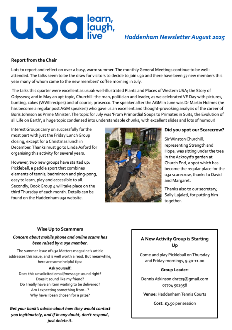 Haddenham u3a publishes a newsletter every quarter. You can open or download a newsletter by clicking on the appropriate link below.